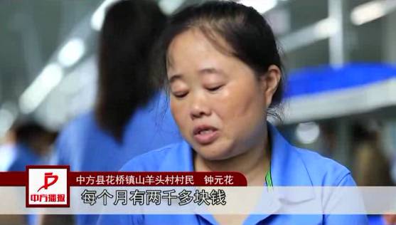 “在這里做事,每個月有兩千多塊錢,對家里有很大的幫助,起碼我兒子生活費不成問題?!?中方縣花橋鎮(zhèn)山羊頭村村民鐘元花感激地說到。