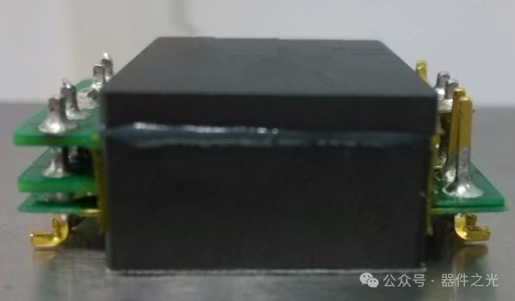 為了將磁芯兩部分固定在一起,形成可靠的磁路結(jié)構(gòu),維持電感量的穩(wěn)定性,保證變壓器可以長期工作,邊柱點(diǎn)膠應(yīng)運(yùn)而生。從工藝上來說,邊柱點(diǎn)膠可分為端面點(diǎn)膠和結(jié)合處點(diǎn)膠。端面點(diǎn)膠,是指在磁芯邊柱端面上涂上膠水,再完成組裝粘接。它適合尺寸比較寬的產(chǎn)品,如EQ平板變壓器,采用端面點(diǎn)膠可以提高變壓器的可靠性。但值得注意的是,端面點(diǎn)膠需要對磨,否則電感量往往無法滿足要求。因而,端面點(diǎn)膠多為人工操作,生產(chǎn)成本較高。